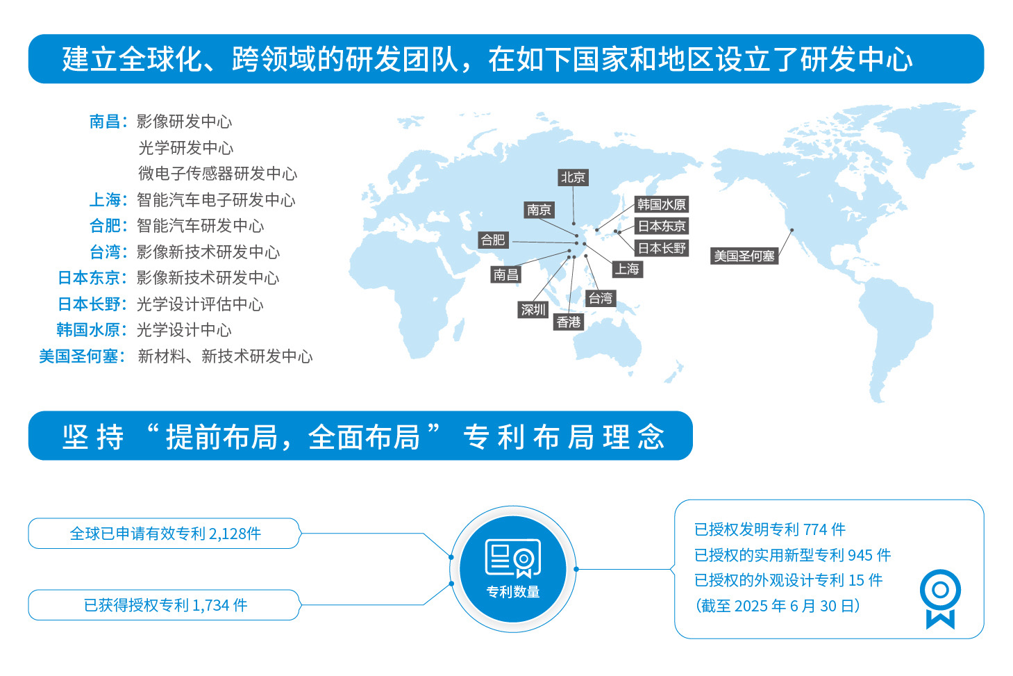 欧菲光坚持“以技术为导向、以创新为驱动”的业务模式,2025 年半年度,研发投入达到 7.58 亿元,占营业收入比重为 7.70%。在中国、美国、日本、韩国等地均建立了创新研发中心,建立起了全球化、跨领域的研发团队。